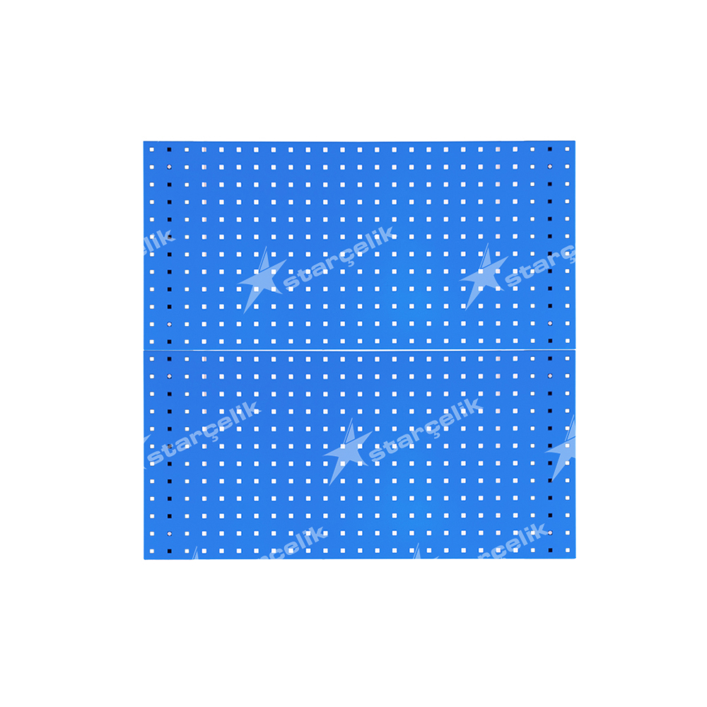 STAR ÇELİK Profesyonel delikli takım asma panolarımız, yüksek kalitede sac metalden üretilir, elektrostatik toz boya ile boyanır yüksek dayanımda ve sağlamlıktadır. Profesyonel delikli takım asma panolarımız yan yana veya üst üste montaj edildiğinde delik aralıkları korunur. Geniş alanlarda esnemeler karşı parçalı alan alanı düşünülmüş olup esnemeler ve montajlama kolaylığı için takım asma panolarımız ek takviye profilleri ile desteklenmiştir, montaj lama işlemi gizli vida delikleri üzerinden yapılır. Vida ve dübel ile kolayca duvarlara ya da çalışma tezgâh arkalarına monte edilebilmektedir.
